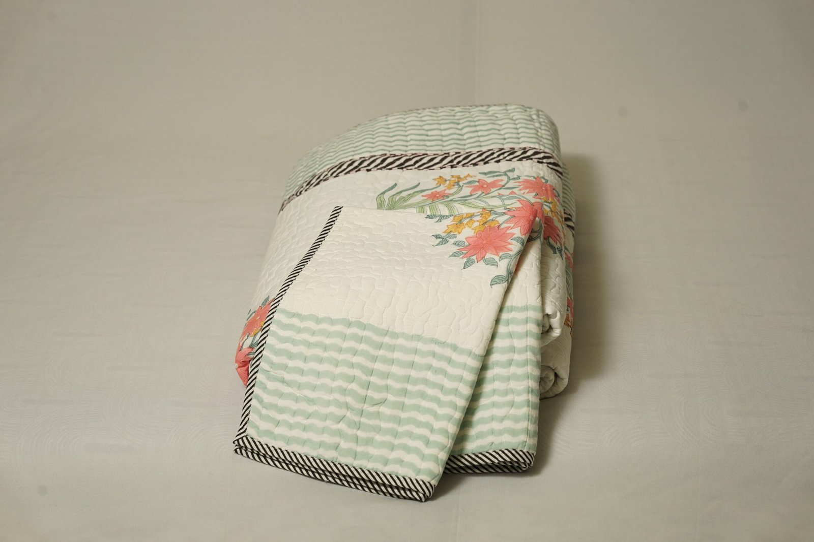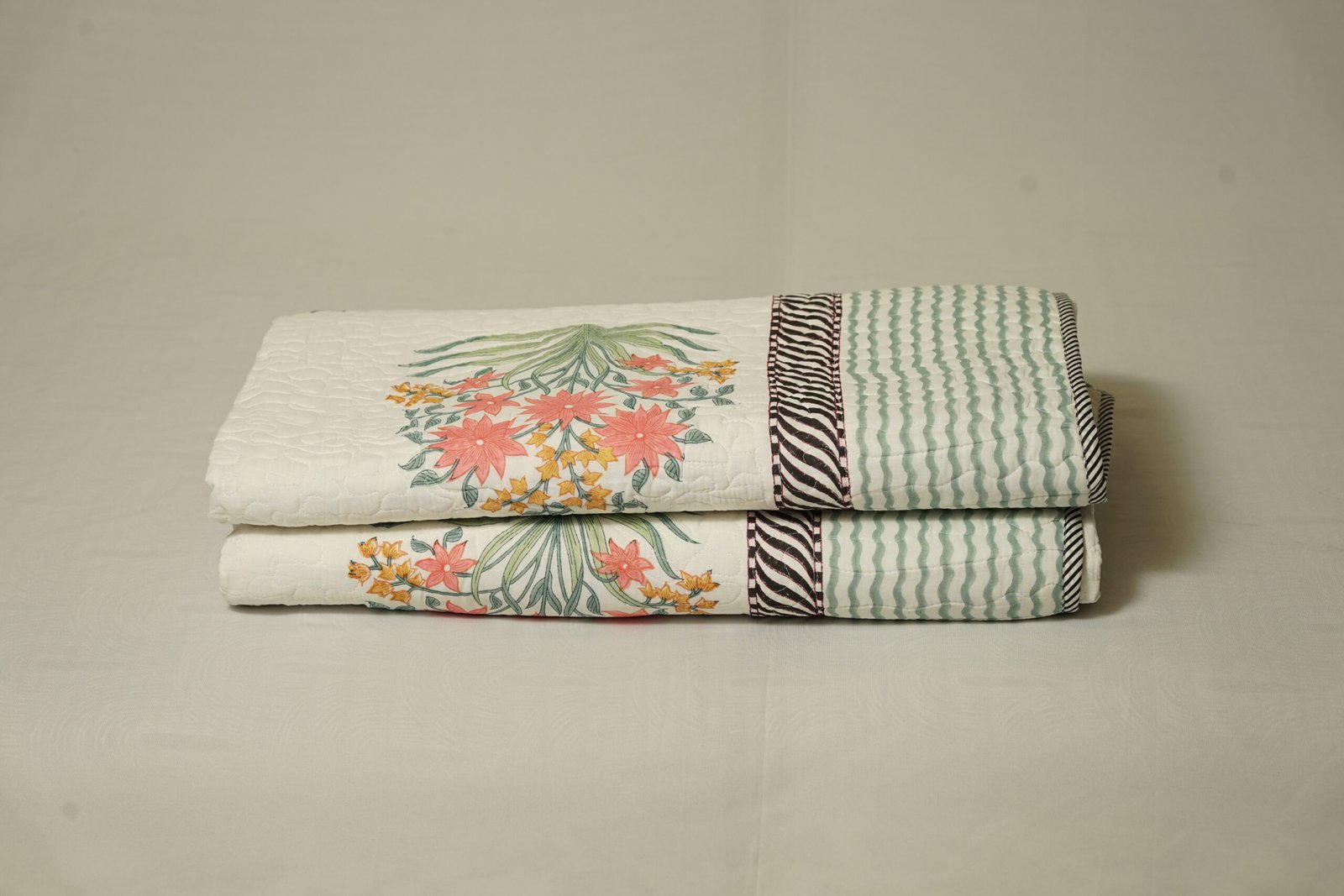 Be the first to review “Quilted jaipur bedcover Blossom Stripes”