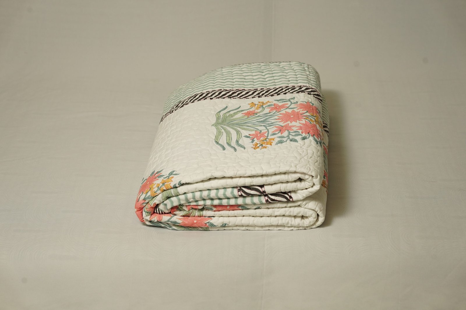 Quilted jaipur bedcover Blossom Stripes
