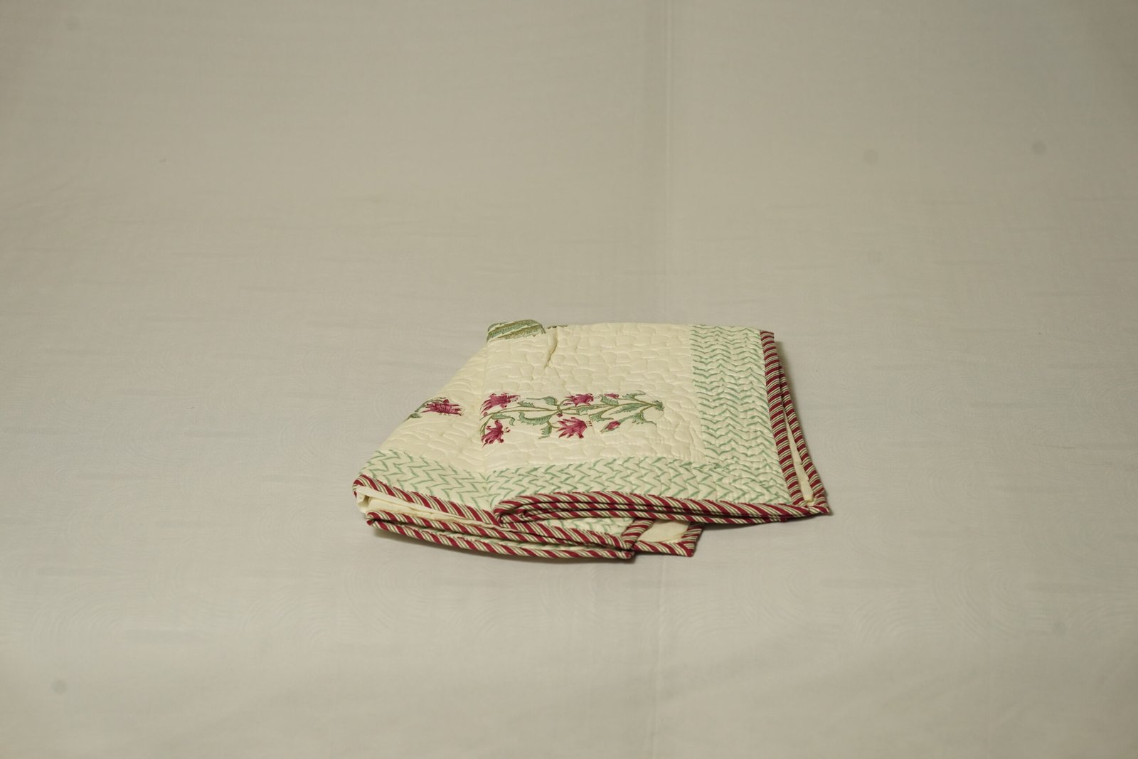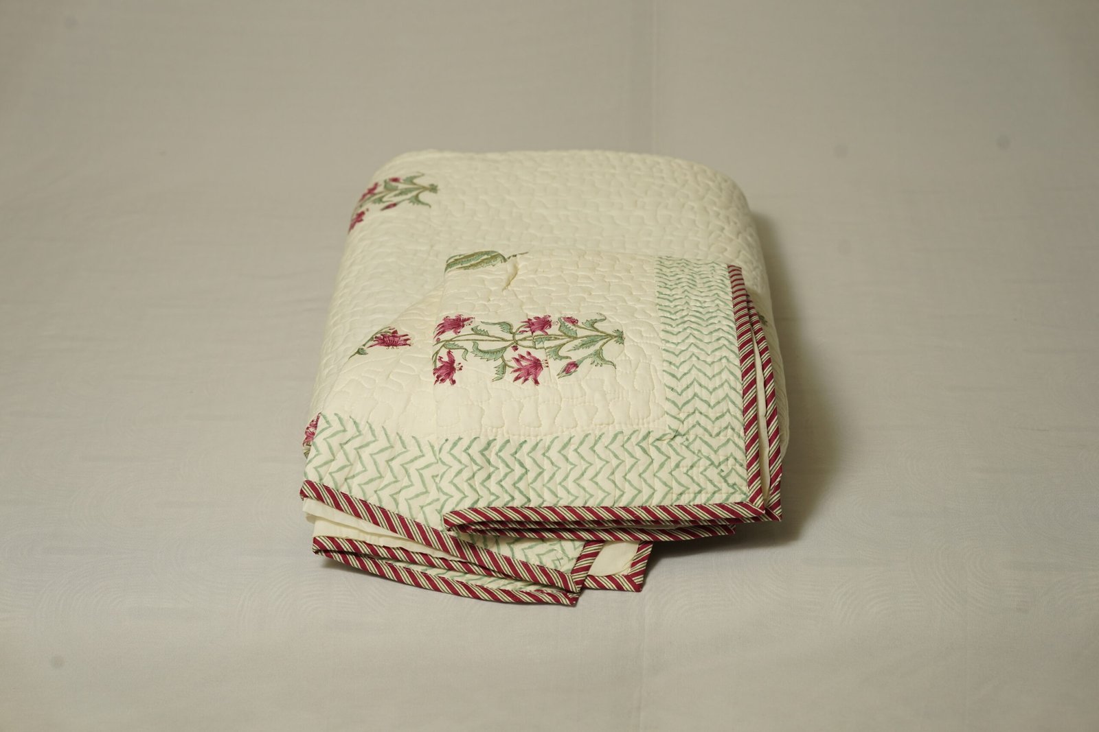 Quilted jaipur bedcover petal pattern